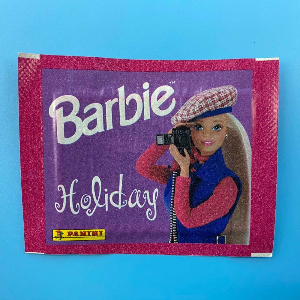 Barbie Holiday sticker packet by Panini (1999), released under licence from Mattel. Features vintage Barbie artwork in holiday-themed designs. Please note: packets are coming apart with age, though sticker contents remain intact.