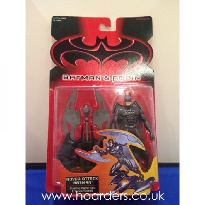 Batman & Robin Hover Attack Batman figure by Kenner (1997). Includes Blasting Battle Sled and Sickle Shields. Based on the 1997 film. Official DC Comics release.