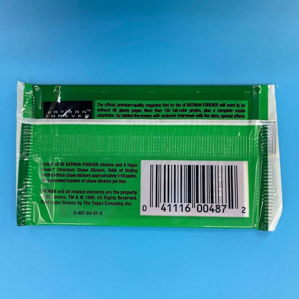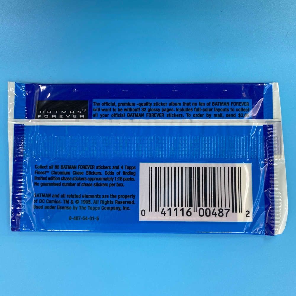 Batman Forever movie photo stickers packet by Topps (1995). Includes 5 stickers per pack. Look for randomly inserted Topps Finest Chromium sticker inserts.