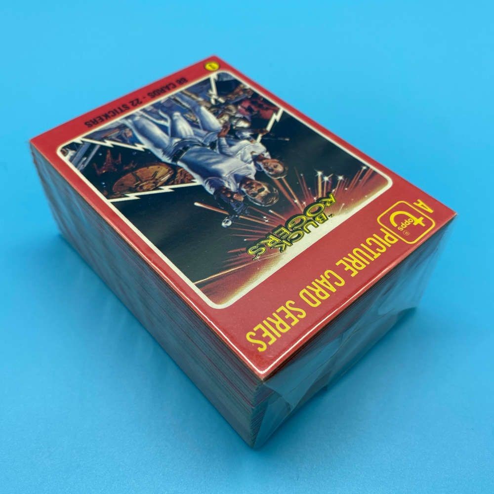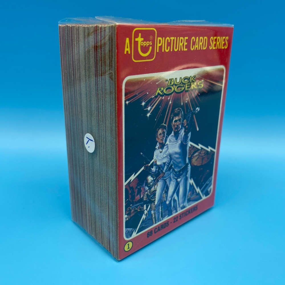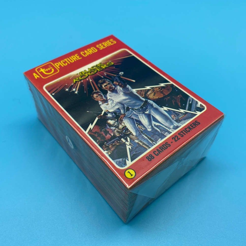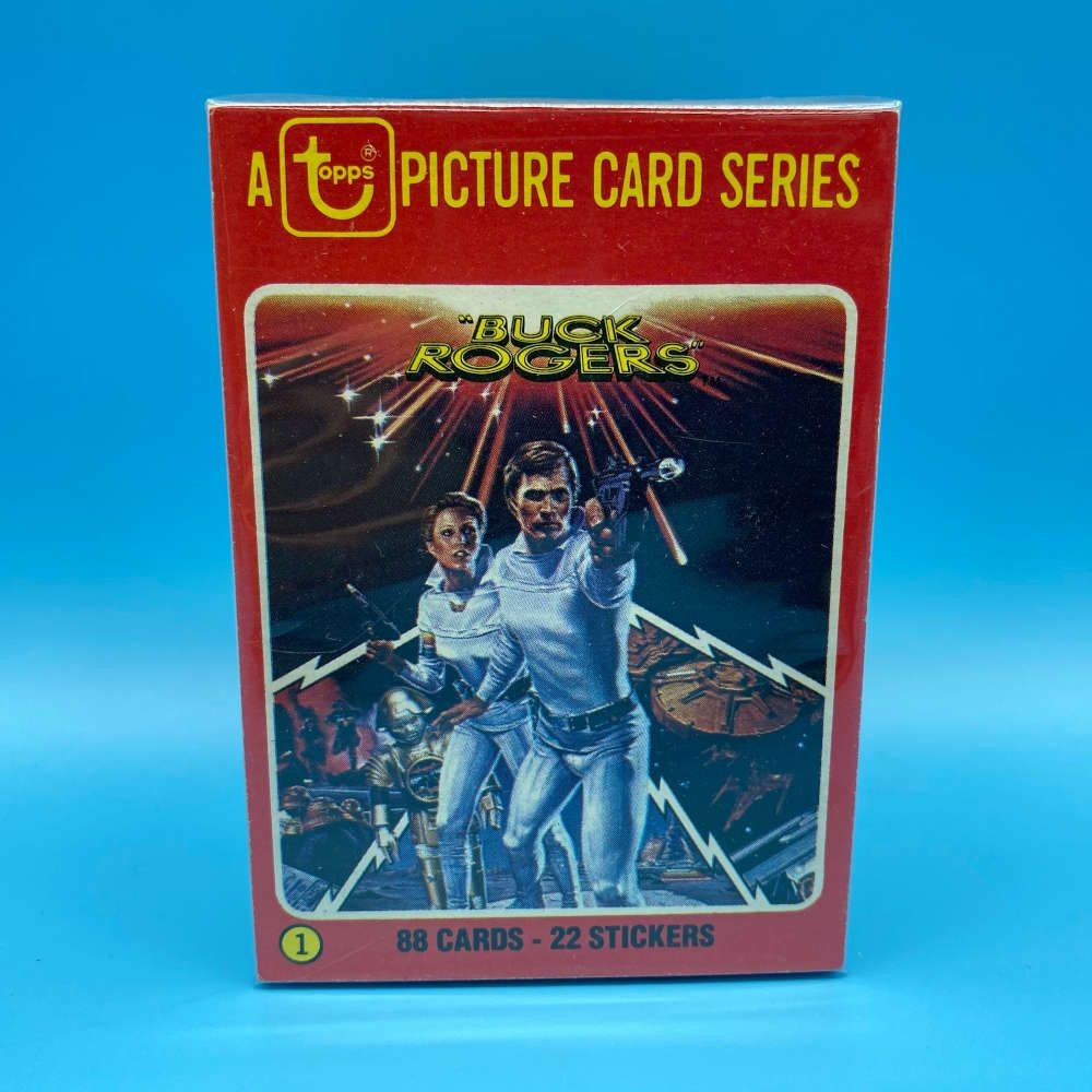 Buck Rogers base set by Topps (1979). Complete 88-card set featuring scenes and characters from the sci-fi TV series. In original packaging.