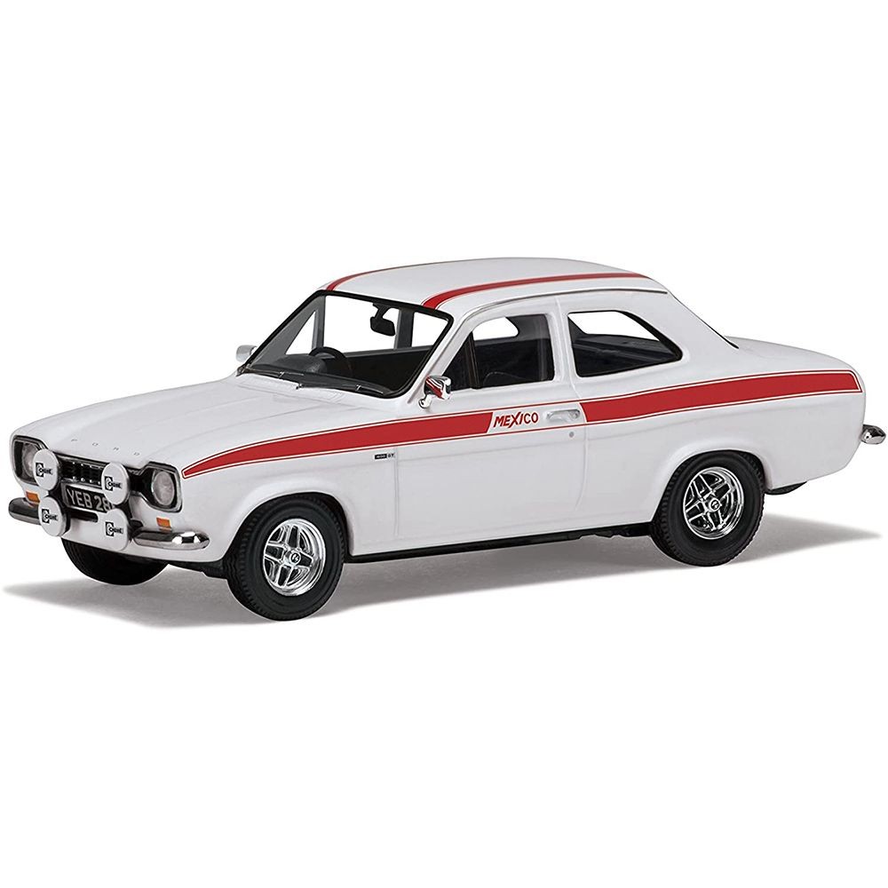 This limited edition die-cast Ford Escort Mk1 Mexico by Corgi was released in 2023 to commemorate the brand’s 60th anniversary. Finished in Diamond White with red Mexico side stripes, the model features alloy-style wheels, accurate interior details, and comes packaged in a commemorative window box. Also includes a collector's card and enamel pin badge.