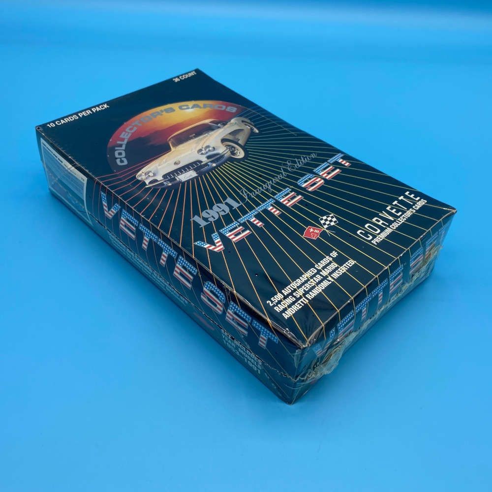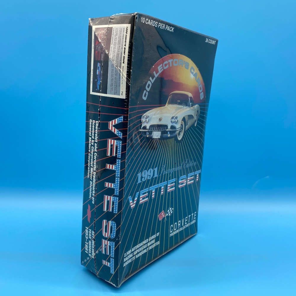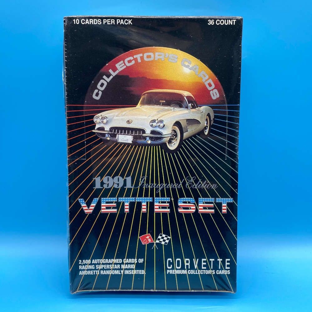 Corvette Vette Set Inaugural Edition collector card box by Collect-A-Card (1991). Factory sealed. 36 packs of 10 cards. Mario Andretti autograph randomly inserted.