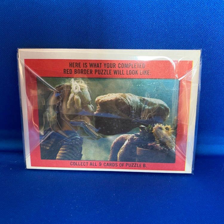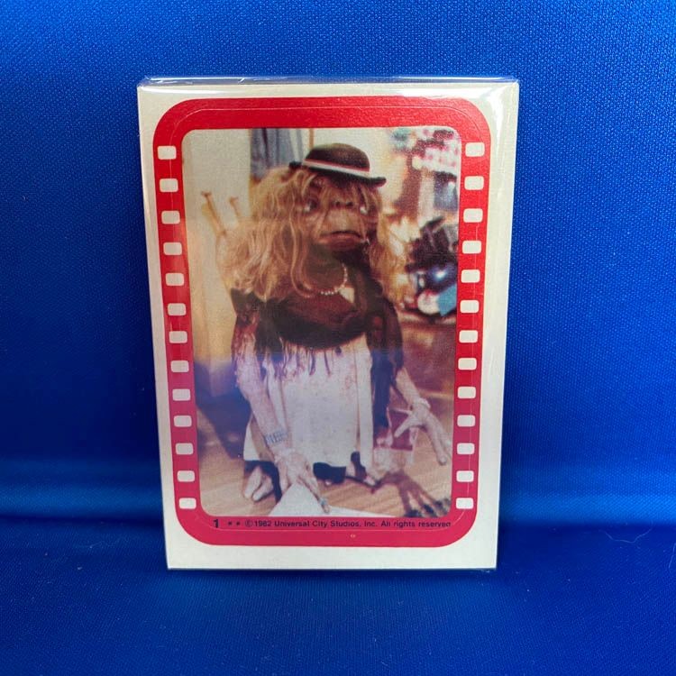 £24.95E.T. The Extra-Terrestrial Sticker Set includes 12 character-themed stickers from the 1982 Topps release, based on the original Universal Studios film. The stickers feature iconic scenes from E.T. the Extra-Terrestrial, including the film’s most memorable moments and characters. These collectible inserts were released alongside the 1982 Topps trading card series and printed with red film-style borders.