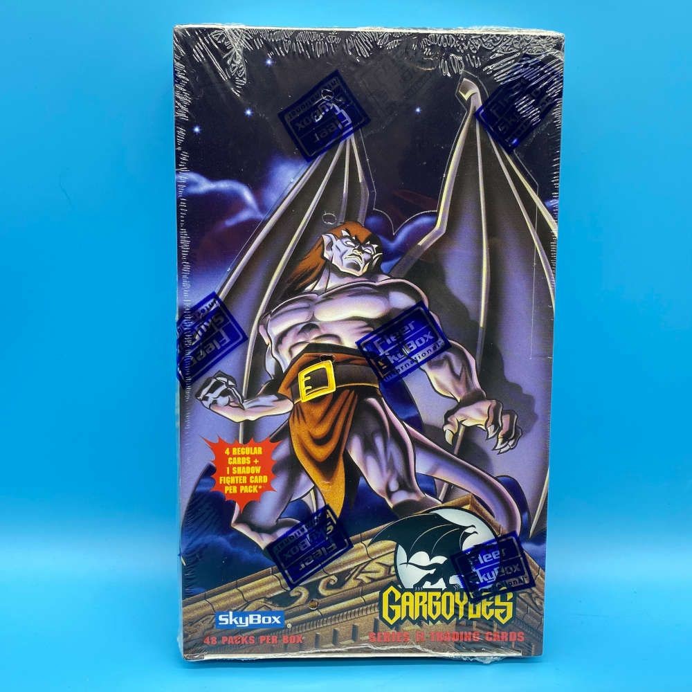 Gargoyles Series II trading card box by SkyBox (1996). Includes 48 packs with 5 cards each. Look for Shadow Fighter cards and Static Glow chase inserts.