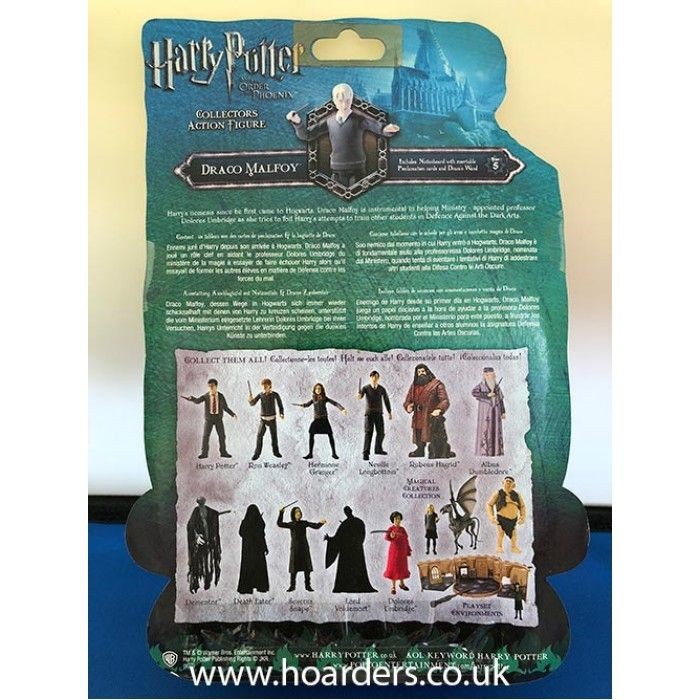 Draco Malfoy action figure by Popco from Harry Potter and the Order of the Phoenix. Includes wand, noticeboard, and Proclamation card accessories.