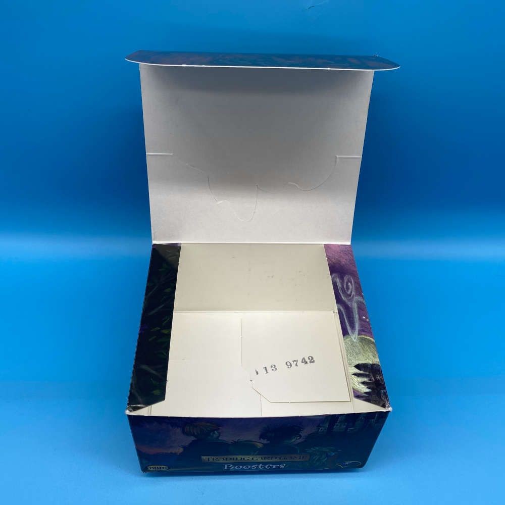 This is an empty retail display box from the Harry Potter Trading Card Game, released in 2001 by Wizards of the Coast. Featuring Hogwarts Castle under a moonlit sky, the box was originally used to contain booster packs from the base set. Ideal for collectors seeking display items or to complete their TCG memorabilia, this item contains no cards or packets. Part of the officially licensed trading card game series launched alongside the first film, Harry Potter and the Philosopher’s Stone.