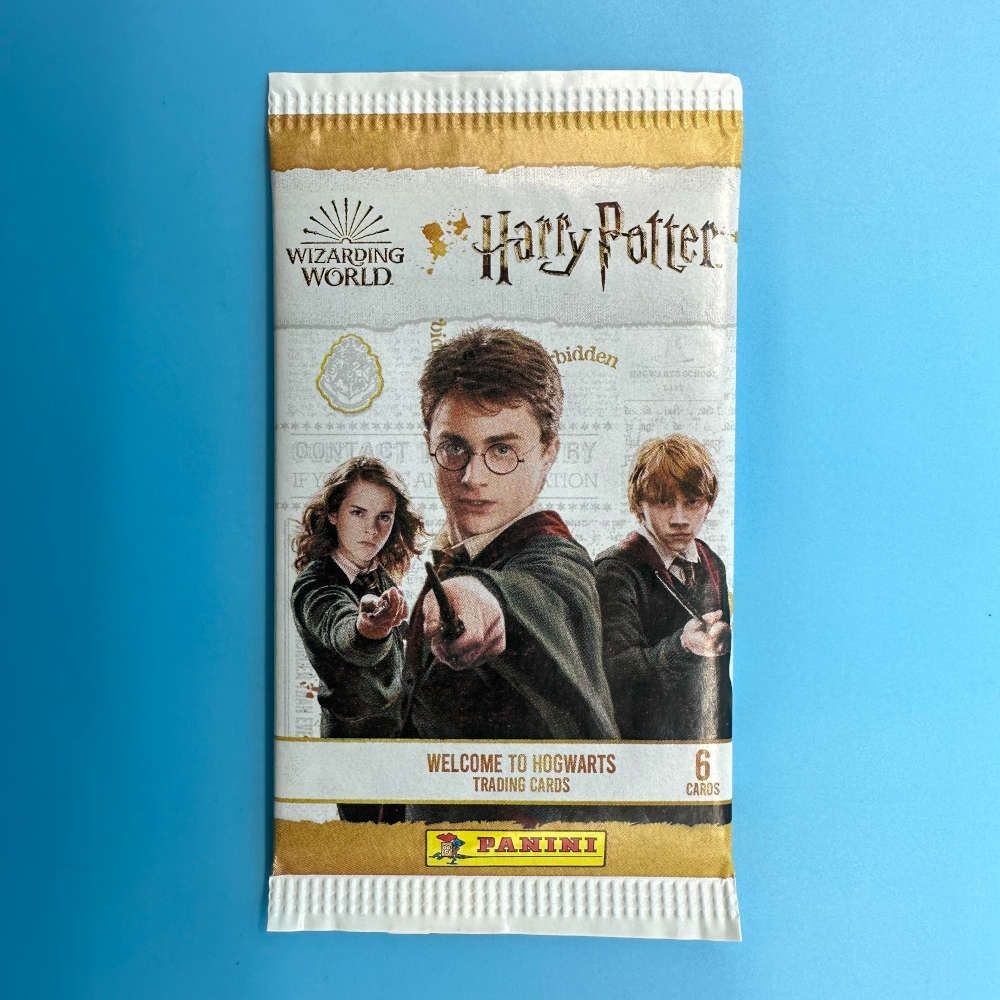 This single packet is from the Harry Potter Wizarding World: Welcome to Hogwarts trading card series released by Panini in 2021. Each packet contains 6 cards drawn from a 216-card set, including 156 base cards and 60 special foil or textured cards. Featuring characters, scenes, and magical moments from across the Wizarding World, this officially licensed set was distributed internationally.