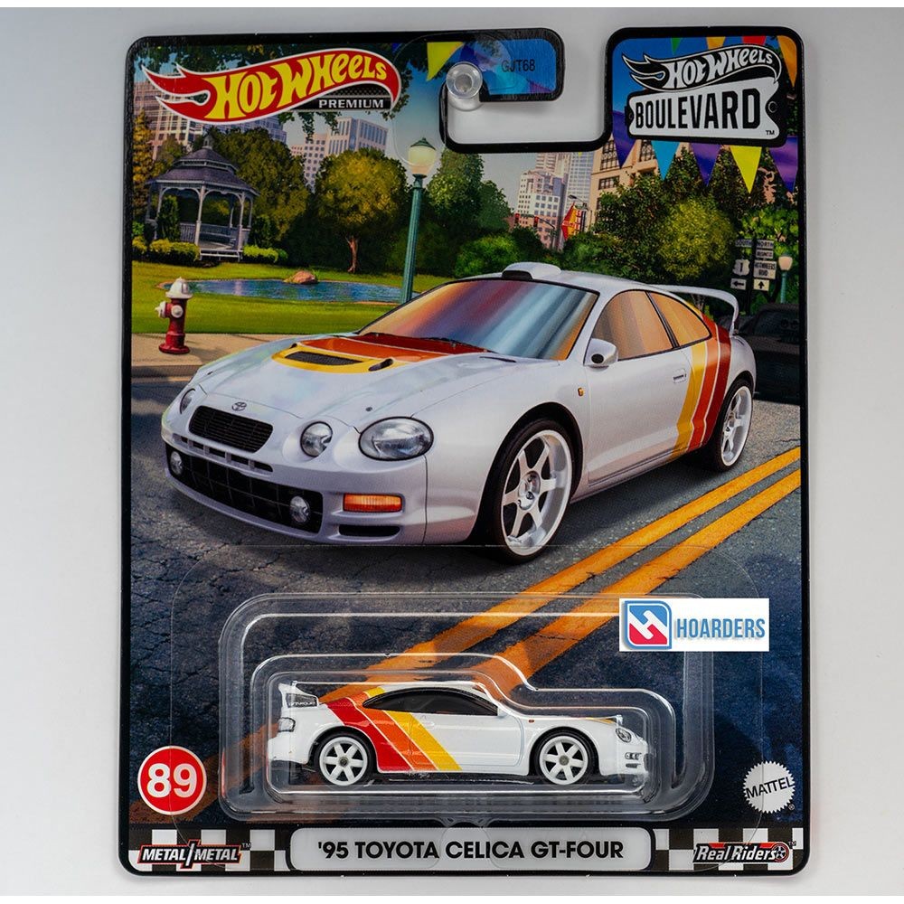 Hot Wheels ’95 Toyota Celica GT-Four from the 2023 Boulevard series. Premium die-cast with Real Riders and metal/metal construction. Number 89 in the set.