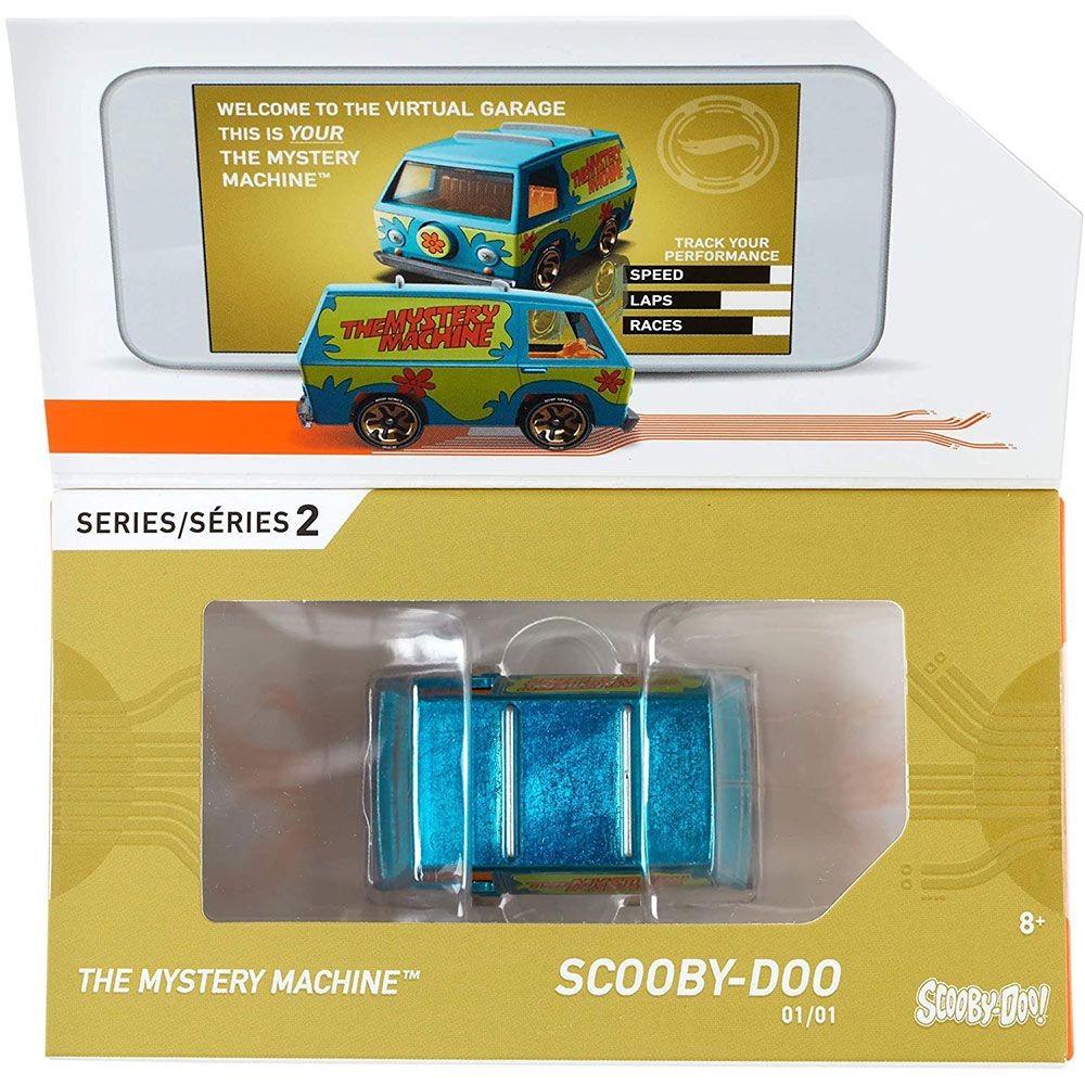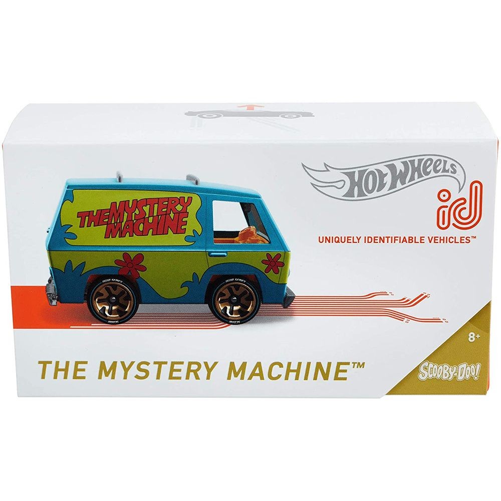 This premium Hot Wheels die-cast vehicle was released in 2019 as part of the id Series 2. Model GVY30 features The Mystery Machine from Scooby-Doo, complete with digitally embedded NFC chip for use with the Hot Wheels id app. The chip allows for tracking speed, laps, and storing the vehicle in a virtual garage. The car comes in special id packaging with detailed graphics, exclusive wheels, and enhanced paint deco.