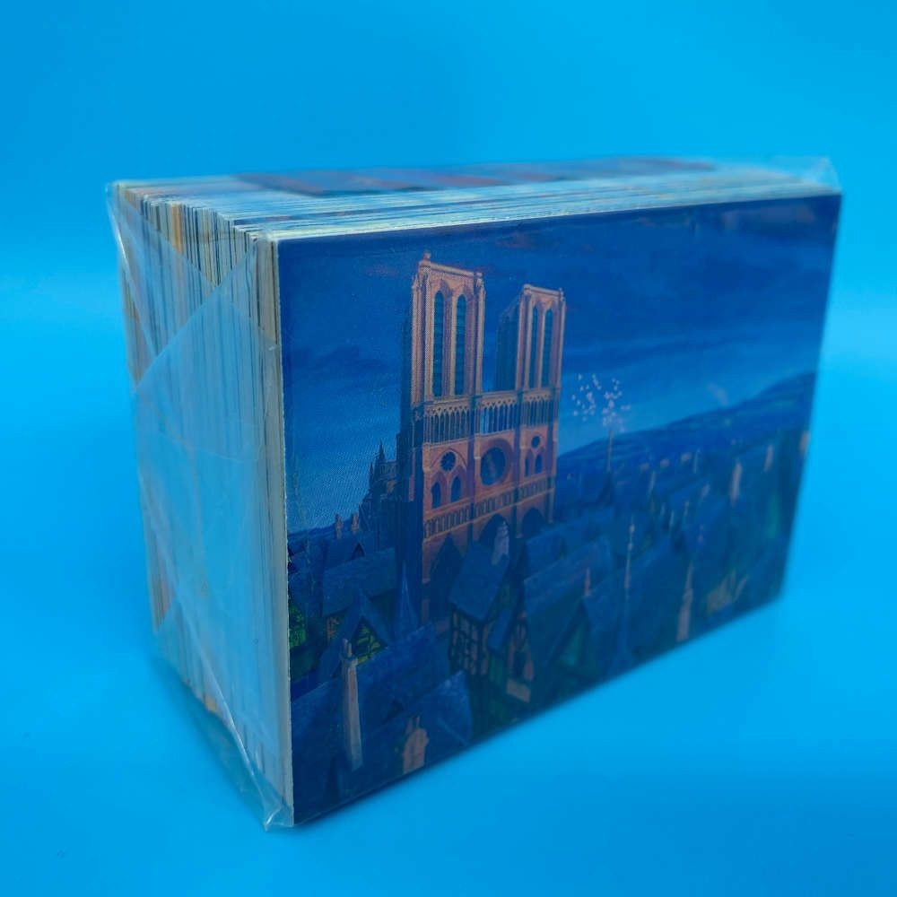 This officially licensed Hunchback of Notre Dame trading card base set by SkyBox includes all 101 cards. The set features full-colour images from the 1996 Disney animated film, showcasing characters such as Quasimodo, Esmeralda, Phoebus, and Frollo. Artwork highlights dramatic and emotional moments set in and around Notre Dame Cathedral, making it an ideal collector’s item for Disney animation fans.