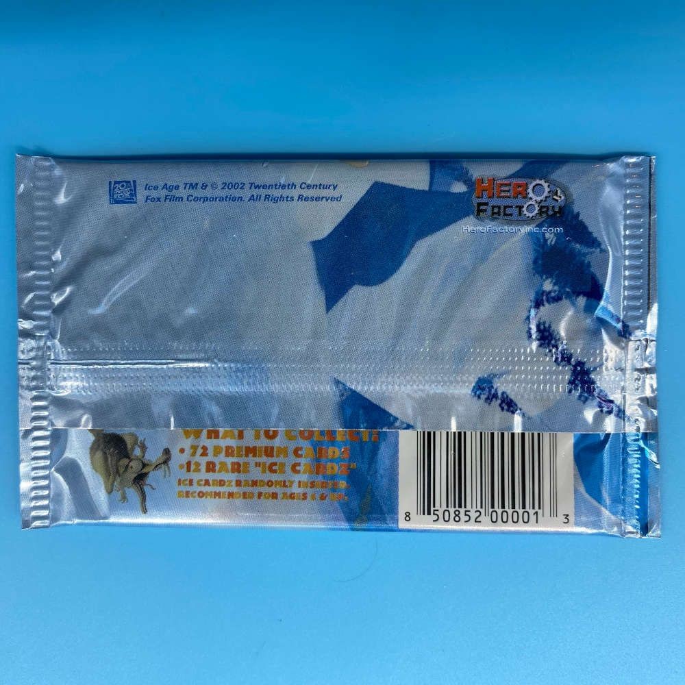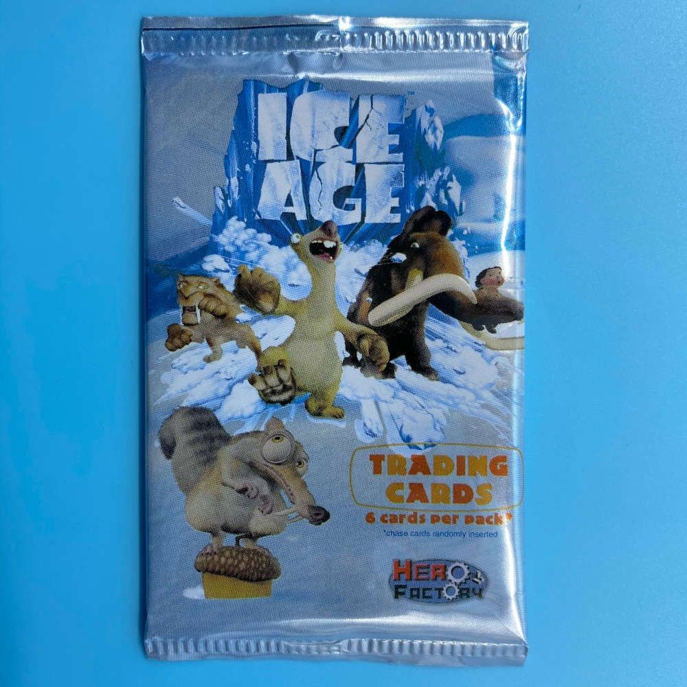 Ice Age trading card packet by Hero Factory (2002). Includes 6 cards per pack. Look for randomly inserted Rare Ice Cardz featuring characters from the film.