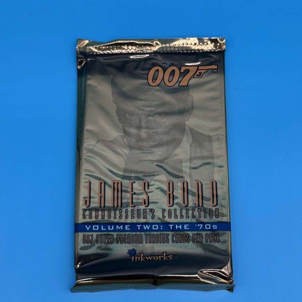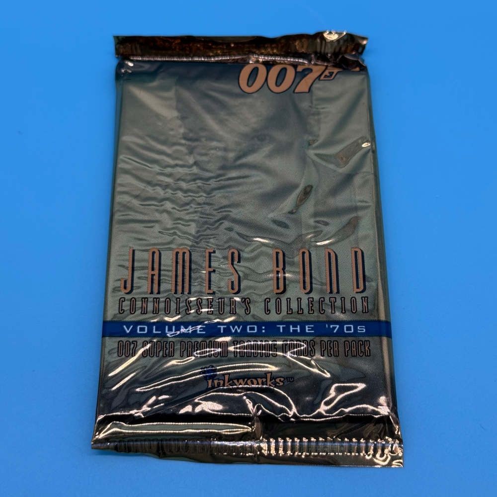 James Bond 007 The Connoisseur's Collection Vol. 2: The 70s single packet by Inkworks (1996). 7 cards per pack. Includes chase inserts. Wrapper variants shown.