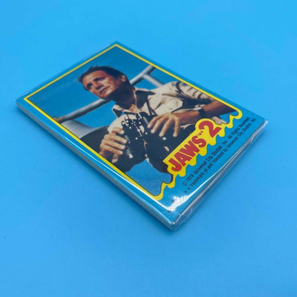 Jaws 2 sticker set by Topps (1978). Complete set of 11 stickers featuring key scenes and characters. Official Universal City Studios licensed release.