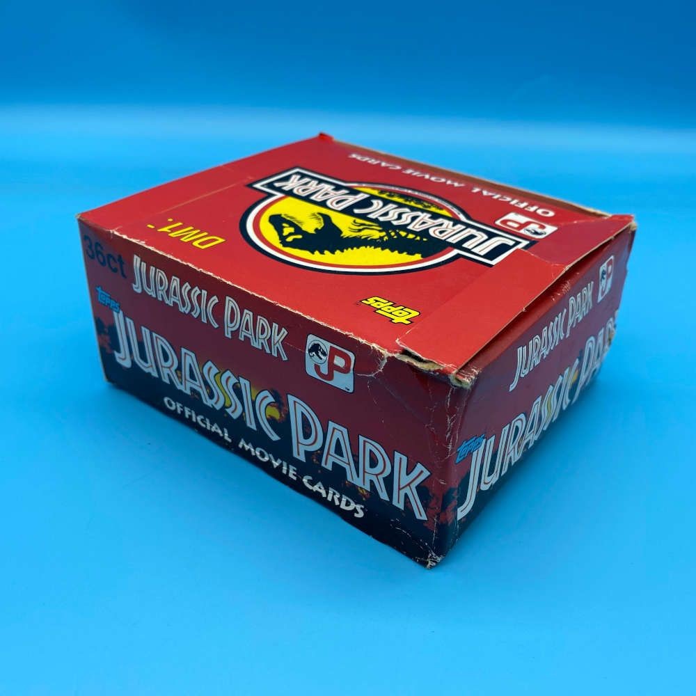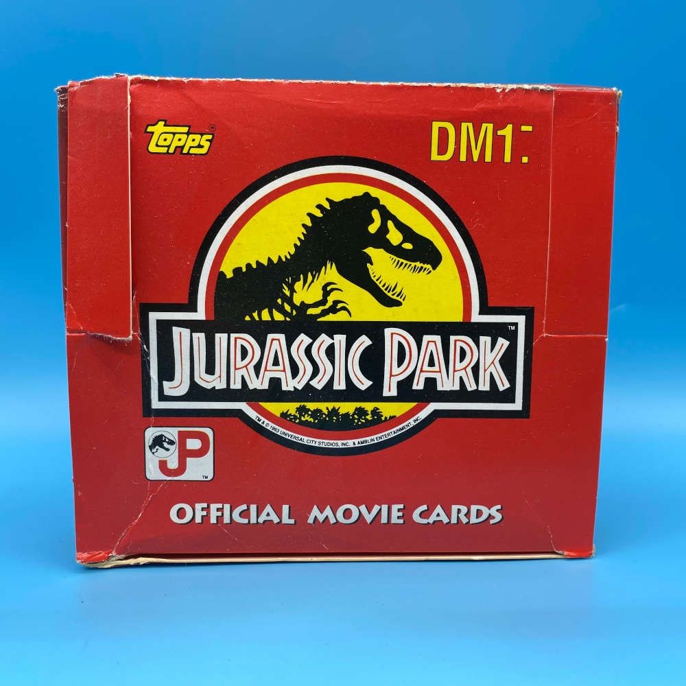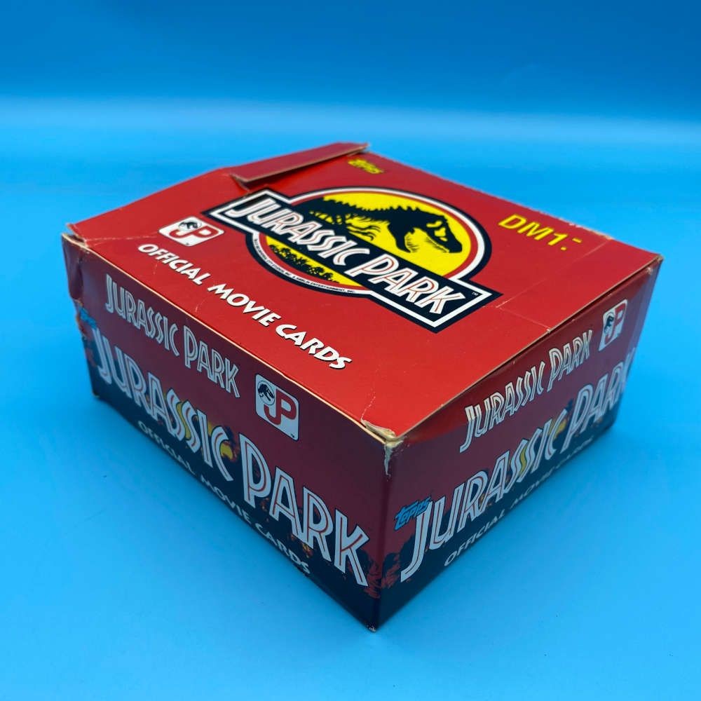 Empty Jurassic Park trading card box by Topps (1992). German DM1 packaging. Official movie card retail display. May be sent flat packed.