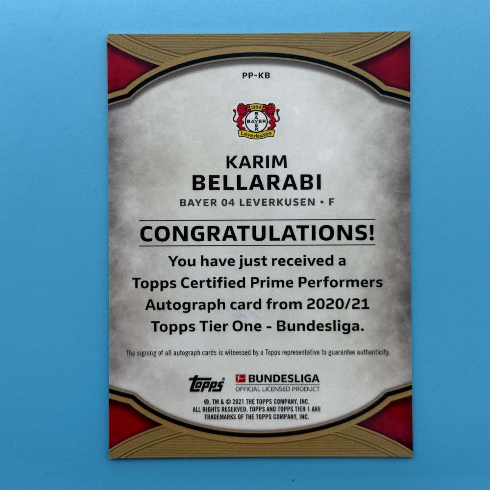 - Product Name: Karim Bellarabi Prime Performers Autograph Card – Bayer 04 Leverkusen