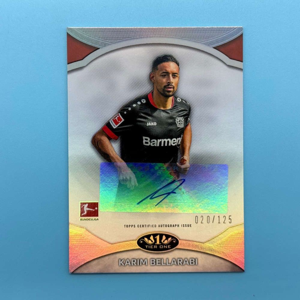 Karim Bellarabi Prime Performers autograph card from 2020/21 Topps Tier One Bundesliga. Serial numbered 020/125. Code PP-KB. Certified Topps signature.