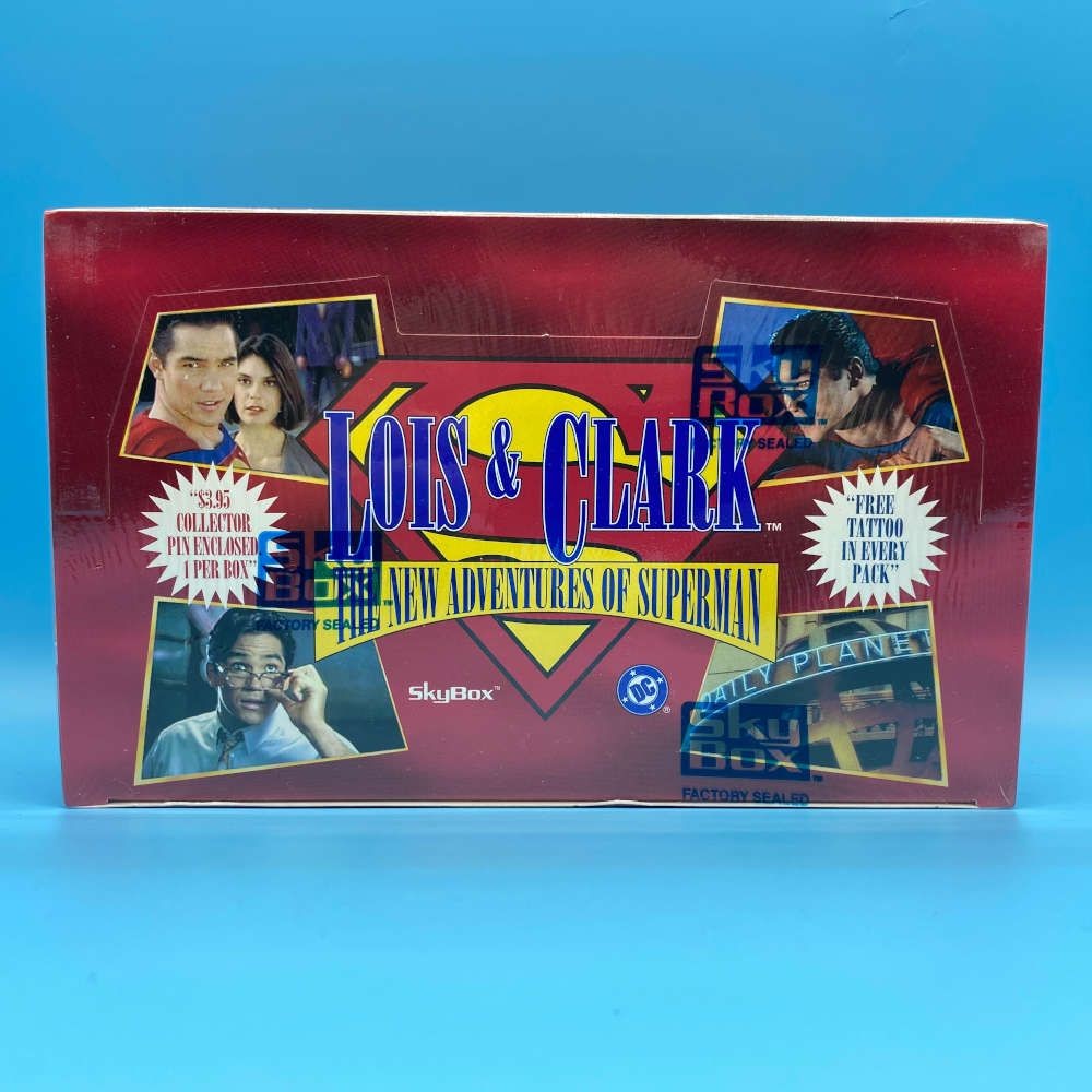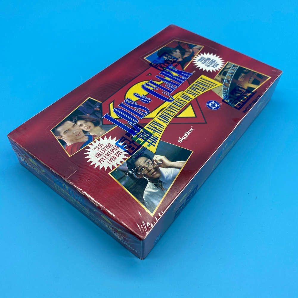 Lois & Clark trading card box by SkyBox (1995). Sealed box with 36 packets, 8 cards each. Includes collector pin and chase foil inserts. Official DC Comics release.