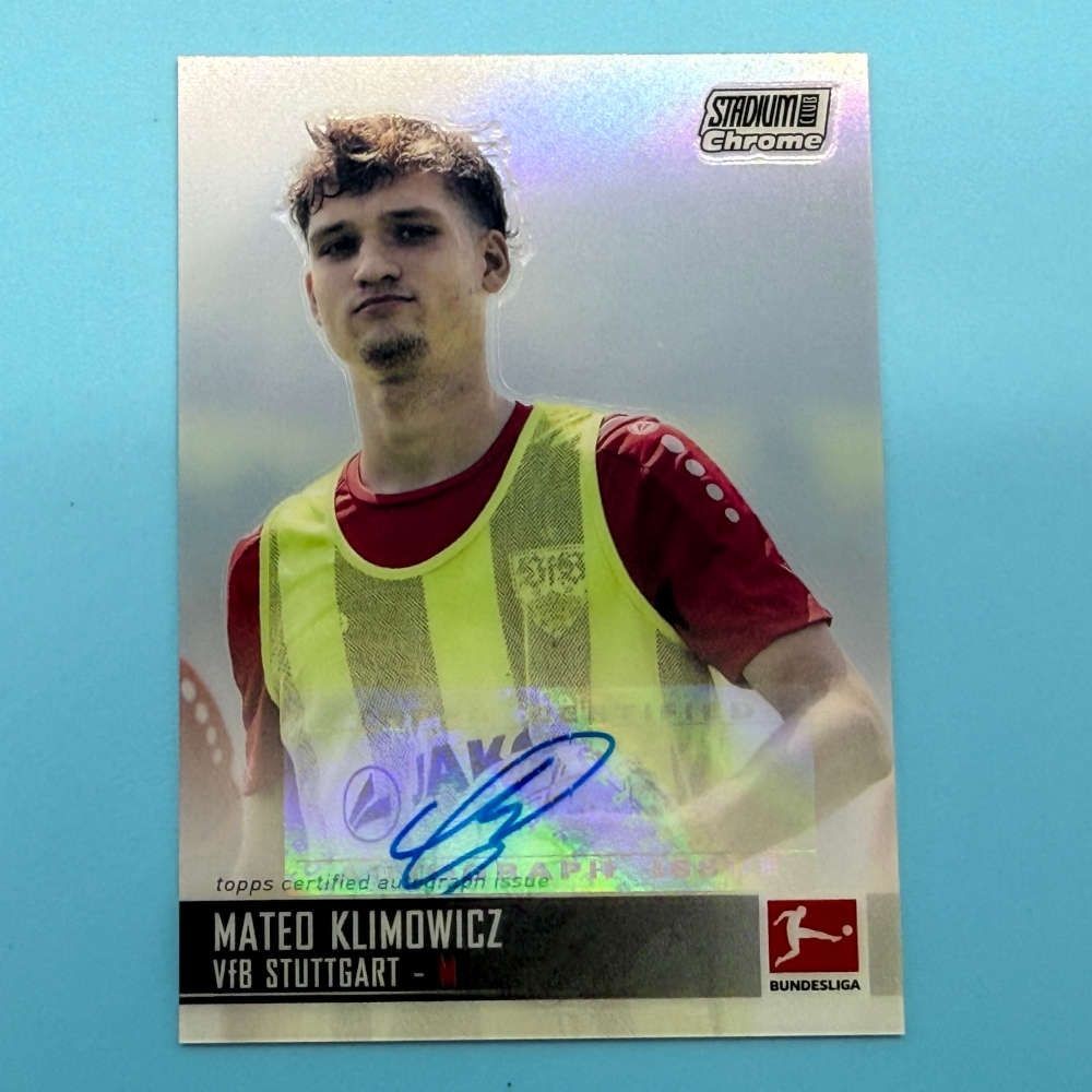 Mateo Klimowicz autograph card from 2021/22 Topps Stadium Club Chrome Bundesliga. VfB Stuttgart. Certified Topps signature. Card code CAC-MK.