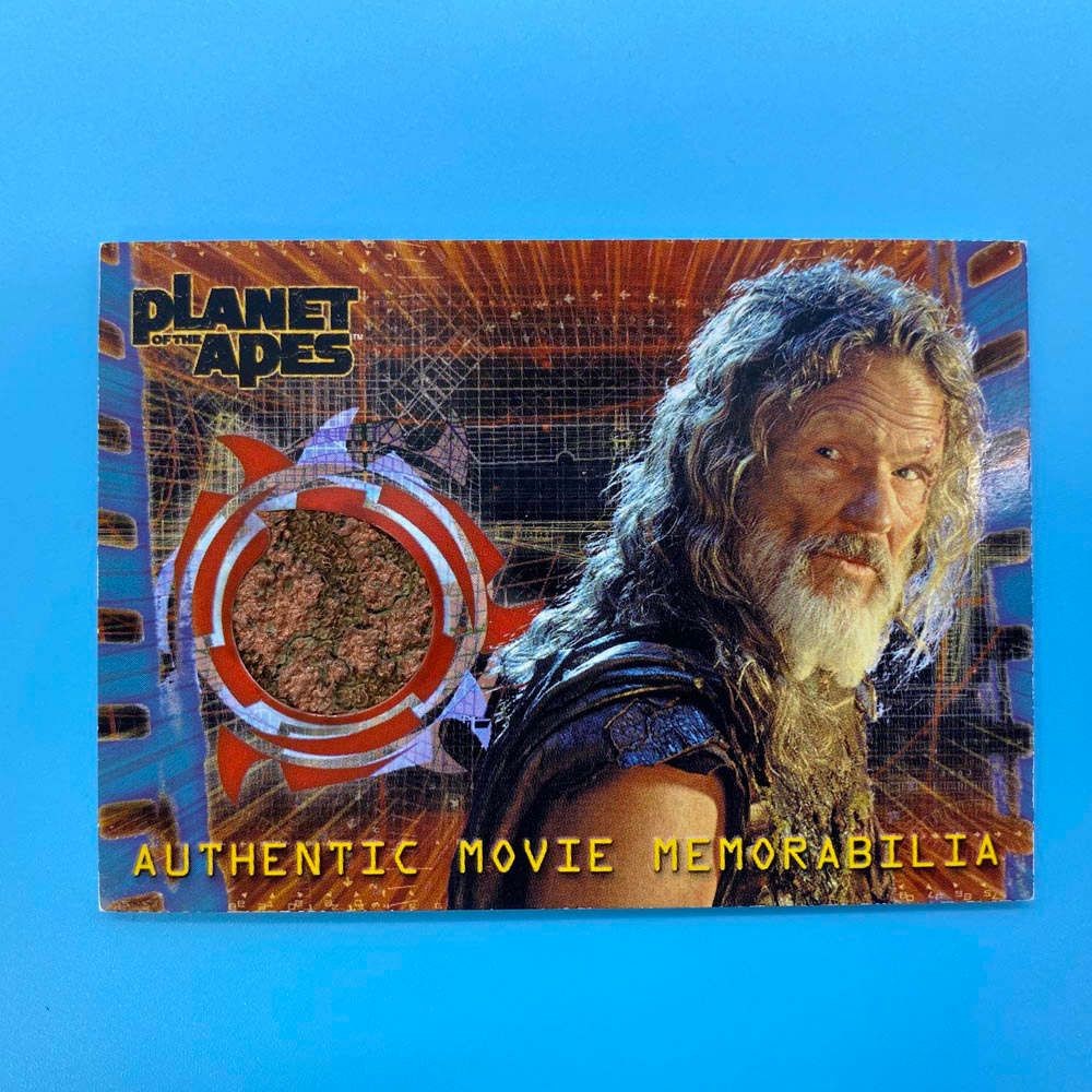 Authentic 2001 Planet of the Apes costume card by Topps featuring screen-used fabric from Karubi’s costume. Official movie memorabilia insert card.