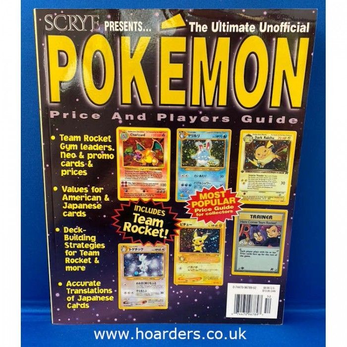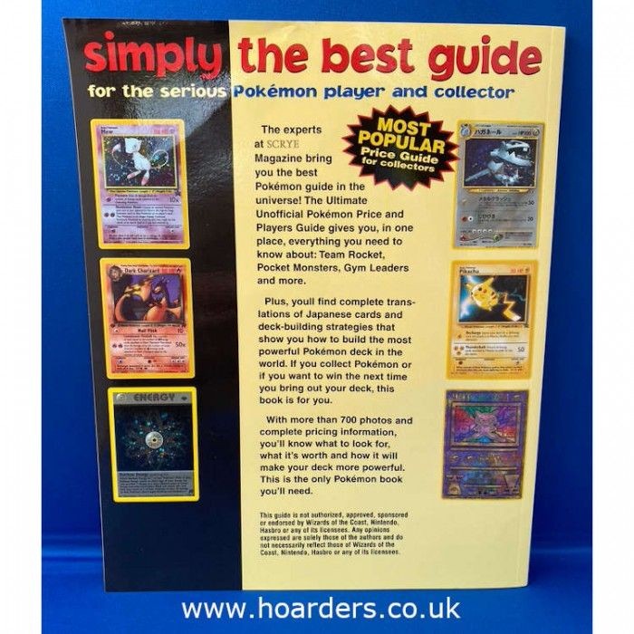 Published in 2000, this Ultimate Unofficial Pokémon Price and Players Guide was produced by Scrye magazine. The guide includes price listings, translations, and deck-building strategies for over 700 American and Japanese Pokémon cards. Featured sets include Team Rocket, Gym Leaders, and early promotional issues. Pages are full-colour with accurate card data and illustrations throughout.