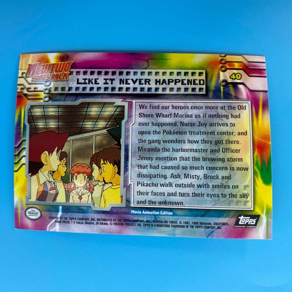 This parallel foil card #40 from Topps is part of the Pokemon the First Movie trading card set. It features foil detailing and is an official licensed collectible. Please refer to photos for condition and details.