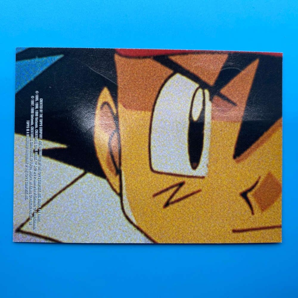 This single sticker features Ash Ketchum from the Pokemon the Movie series. Released by Topps, this collectible sticker showcases artwork from the Pokémon franchise. Please see the photos for condition and details.