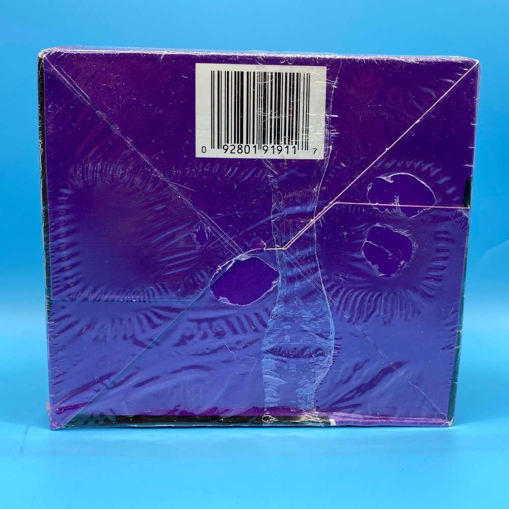 This factory-sealed ProSet Super Stars MusiCards trading box was released in 1991 by Pro Set. The box contains 36 packets with 10 cards per pack and features a wide range of popular rock, pop, and rap artists of the era. Notable names include Madonna, U2, Janet Jackson, George Michael, Kiss, Led Zeppelin, Tina Turner, and many more. This is an early print run containing two different No.86 cards due to a numbering error—The Party card should have been No.90. Packs also include expired Instant Win Scratch Games and Discount Cards from the original promotion.
