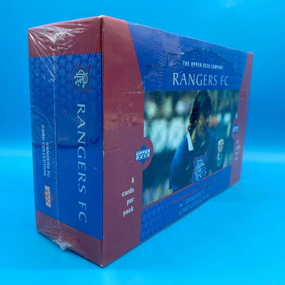 This officially licensed Rangers FC trading card collection was released by Upper Deck in 1998. The factory-sealed display box contains 24 packs, each with 6 cards, highlighting players, moments, and team pride from the storied Scottish football club. Look out for randomly inserted “Gers Cards” across the collection. A nostalgic find for Rangers fans and 90s football card collectors.