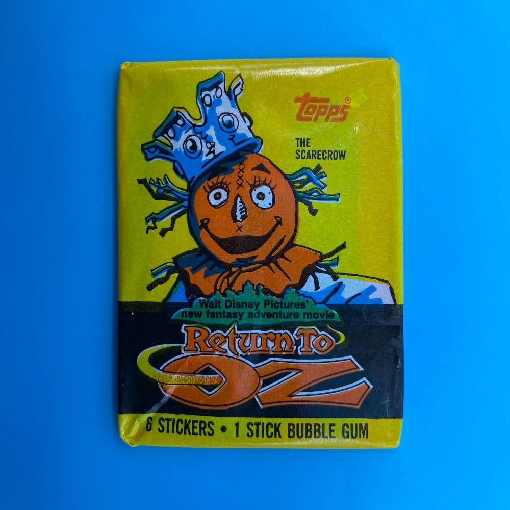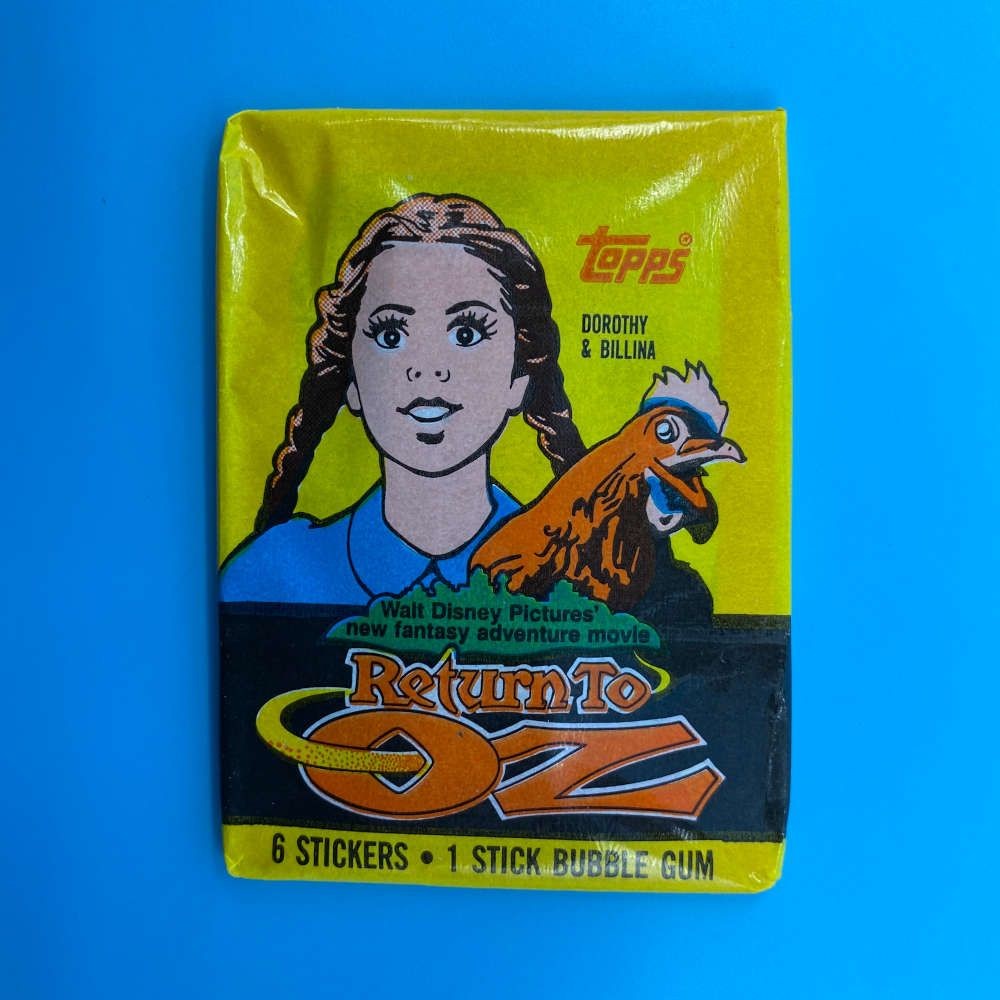 Return to OZ trading card sticker packet by Topps (1985). Includes 6 stickers and 1 stick of bubble gum. Features art from Disney’s fantasy adventure film.