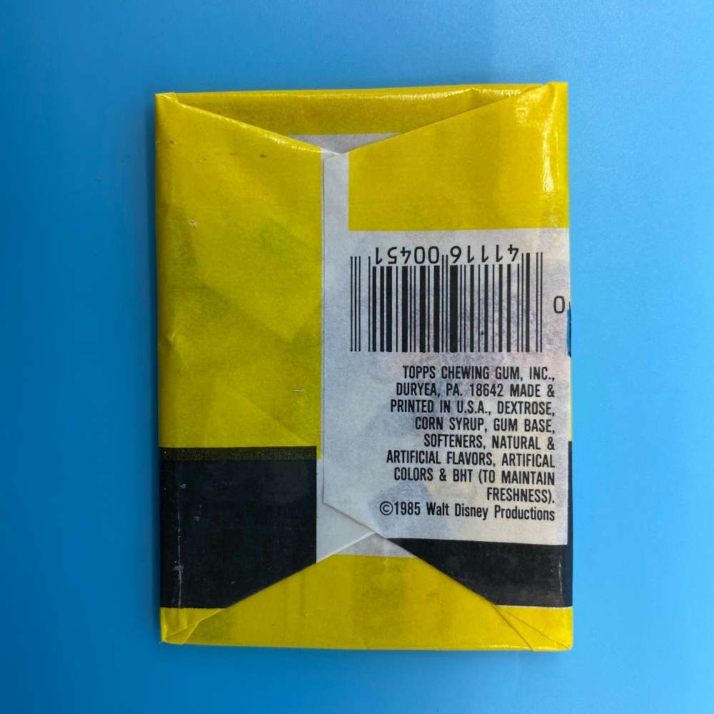 This officially licensed Return to OZ trading card sticker packet was released by Topps in 1985 to coincide with Walt Disney Pictures’ fantasy adventure movie. Each pack contains 6 stickers and 1 stick of bubble gum. The packet features illustrated designs of Dorothy and Billina, with four different wrapper variations randomly distributed across the release.