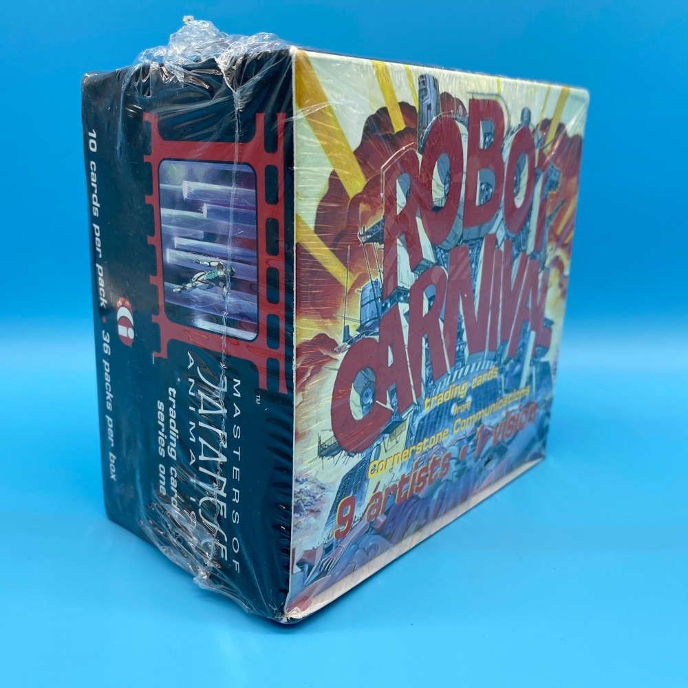 Robot Carnival Series One trading card box by Cornerstone Communications (1990). Sealed box with 36 packets, 10 cards each. Showcases Japanese animation masters.
