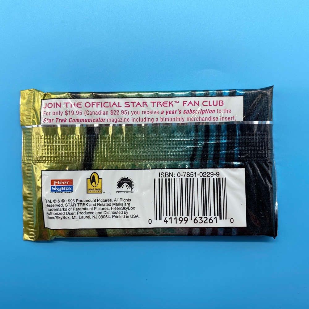 Single booster packet for Star Trek The Card Game by Fleer in 1996. Contains 15 cards. Official Paramount Pictures licensed product.