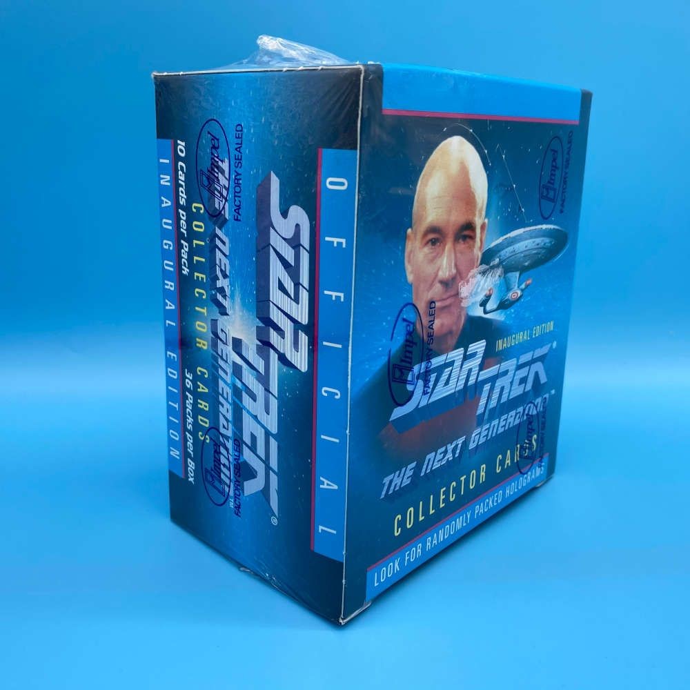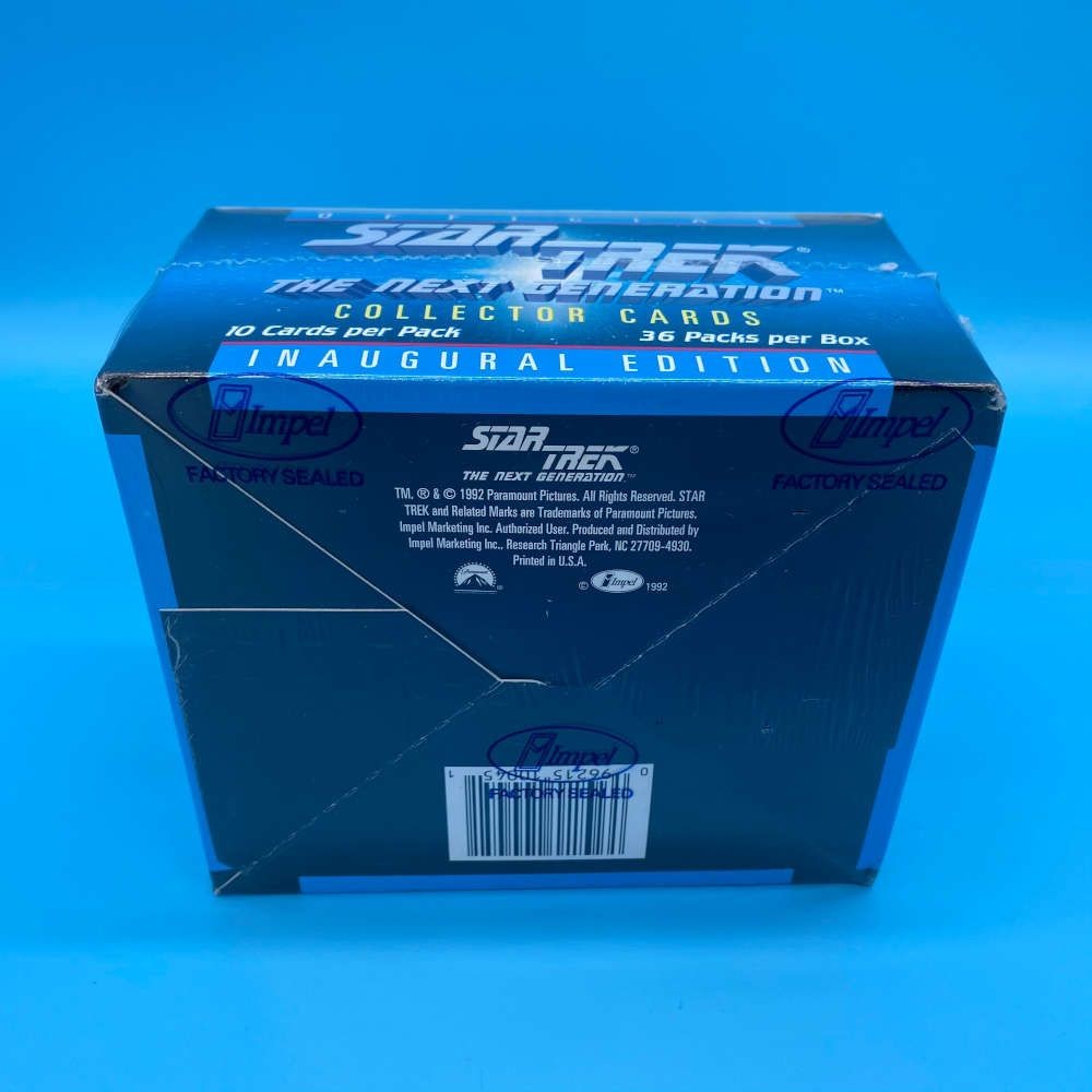 Star Trek The Next Generation Inaugural Edition box by Impel (1992). Includes 36 packets of 10 cards. Look for randomly inserted hologram cards.