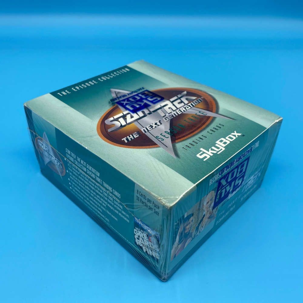 Star Trek The Next Generation Season 3 box by SkyBox (1995). Includes 36 packs of 8 cards. Look for randomly inserted foil and hologram cards.