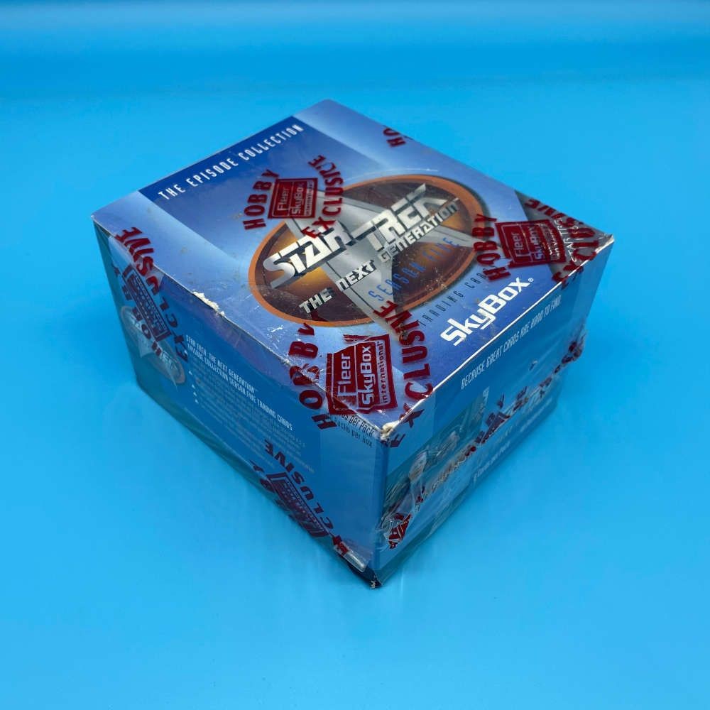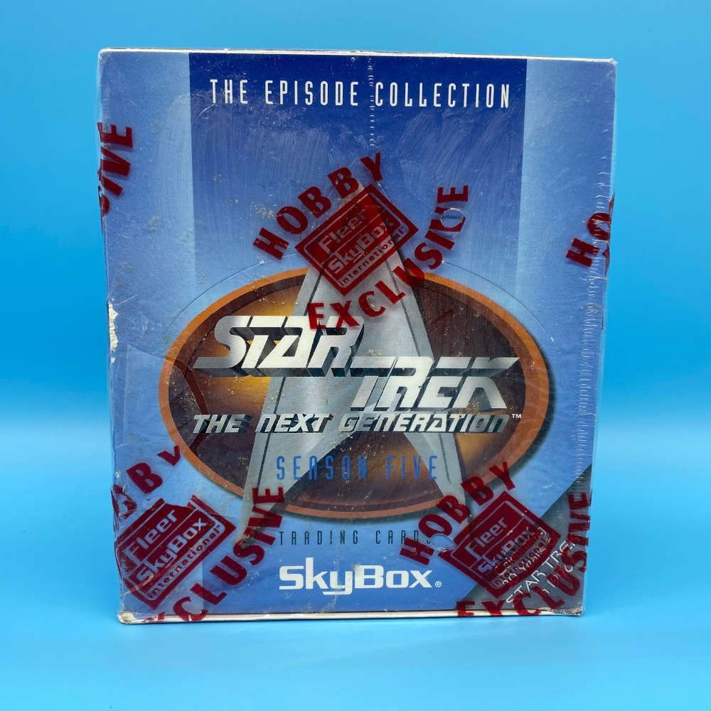 Star Trek The Next Generation Season 5 box by SkyBox (1996). Includes 48 packs of 8 cards. Look for randomly inserted foil and hologram cards. Hobby exclusive.