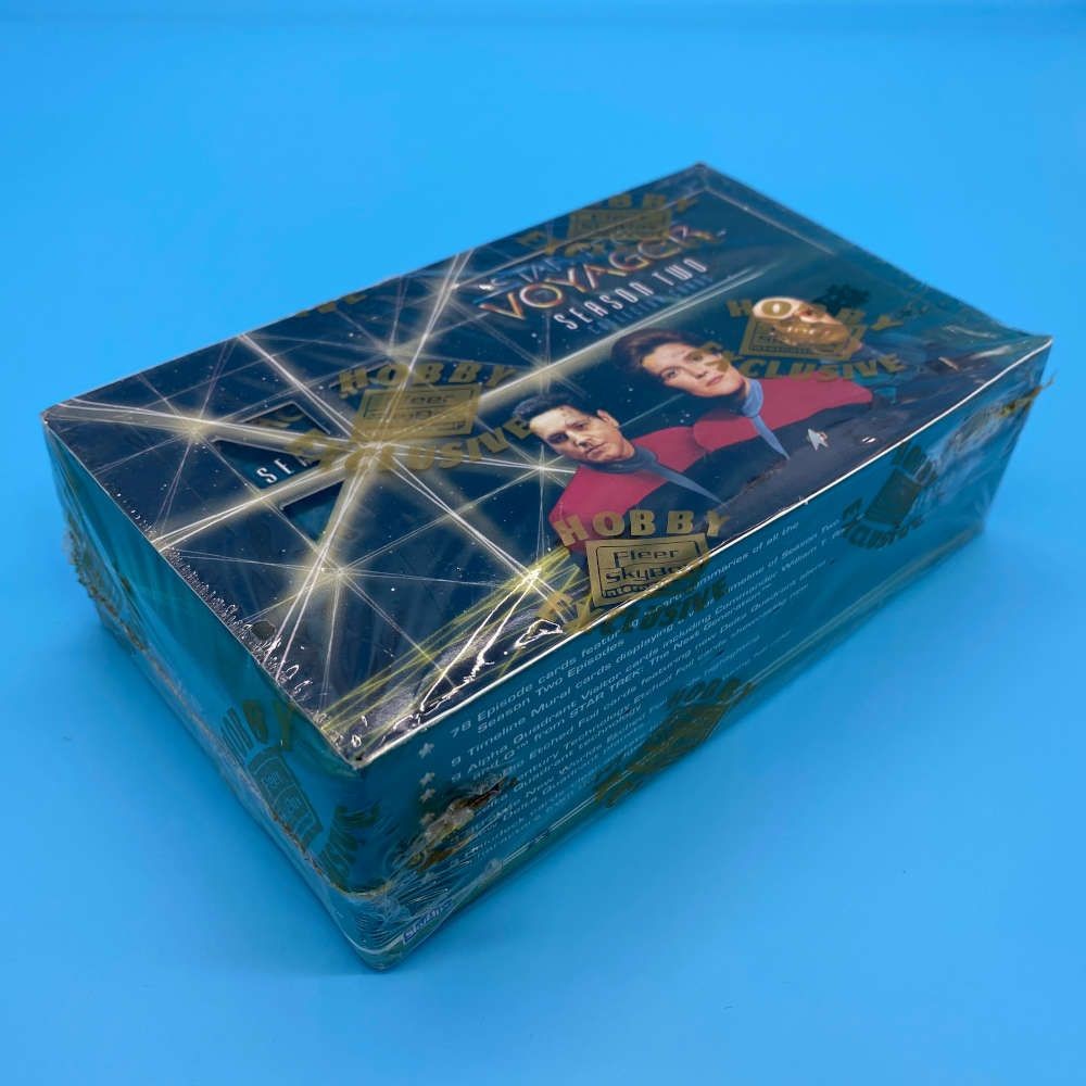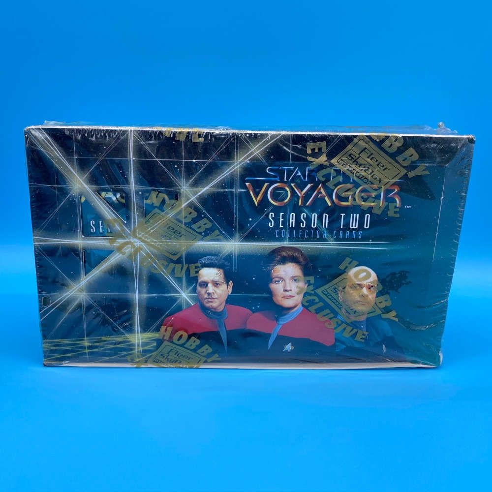 Star Trek Voyager Season 2 trading card box by Fleer SkyBox (1996). Includes 48 packets of 8 cards. Look for etched-foil inserts and acetate holograms.