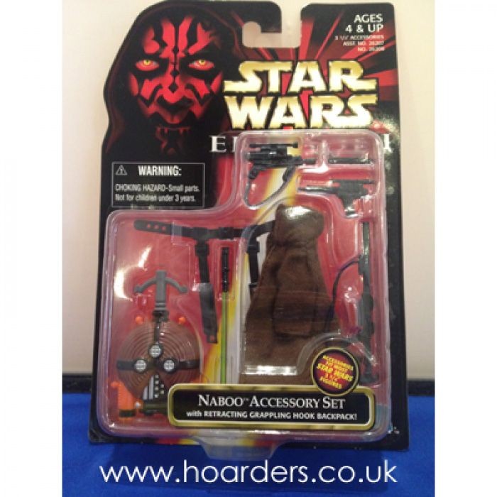 Star Wars Episode I Naboo Accessory Set by Hasbro (1998). Includes retracting grappling hook backpack and gear compatible with most 3¾″ Star Wars figures.