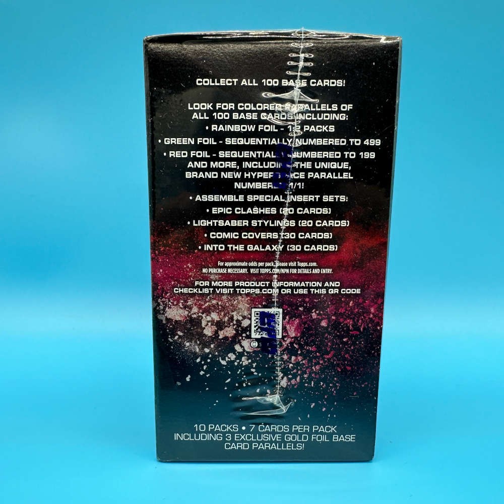 - Insert Types: Gold foil base parallels (3 per box), Parallel cards, Rainbow foil, Comic cover, Epic Clashes, Lightsaber Stylings, Into the Galaxy, Autograph cards