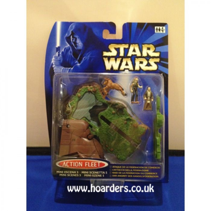 Star Wars Mini Scenes 5 Action Fleet set by Hasbro (1999, European release). Includes terrain base and micro figures from Episode I. For collectors and display.