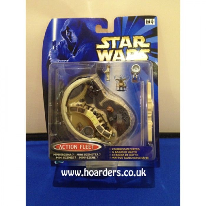 Star Wars Mini Scenes 7 Action Fleet set by Hasbro (1999, European release). Features Watto’s shop scene with miniature accessories and figures.