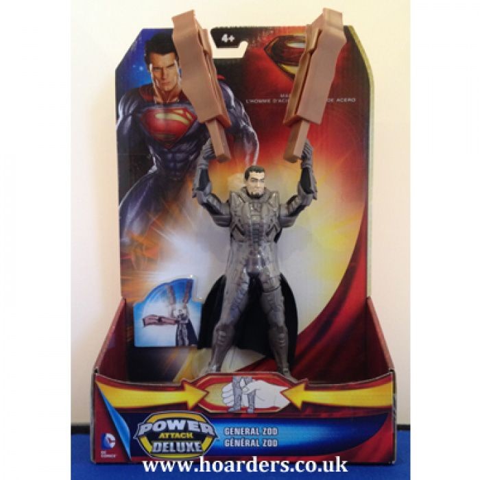 This officially licensed Superman Man of Steel Power Attack Deluxe General Zod action figure was released by Mattel in 2013. The 6.5-inch (16cm) articulated figure features General Zod in his battle armour and comes with a Power Attack accessory. Squeeze the legs to activate the action feature. Includes a mission card for extended play. Factory packaged and suitable for ages 4 and up.