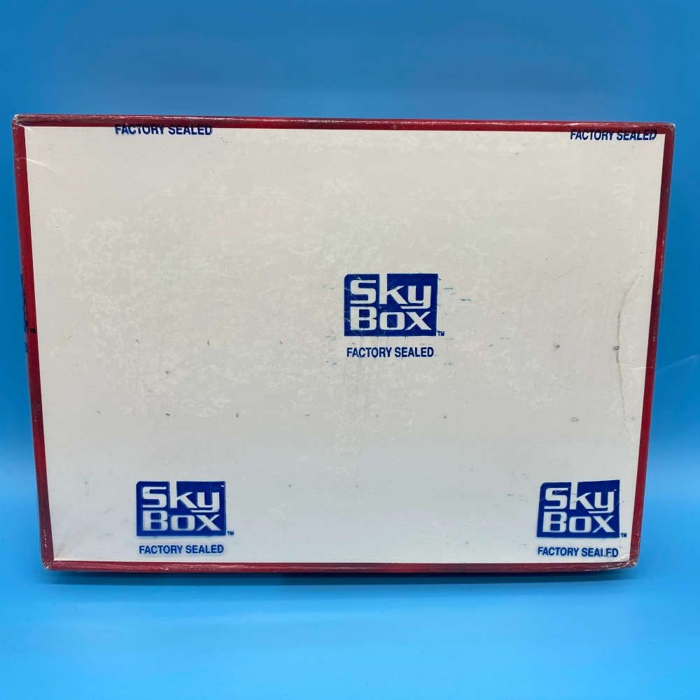 This officially licensed Superman The Man of Steel Platinum Series trading card box was released by SkyBox in 1994. The collector edition features 36 widevision-format packets, each containing 6 premium cards that showcase Superman’s legacy through stylised artwork and storytelling. Randomly inserted Spectra-etched chase cards enhance the set with metallic foil finishes. The red, riveted collector’s box is factory sealed and branded with the Superman emblem and SkyBox logos.