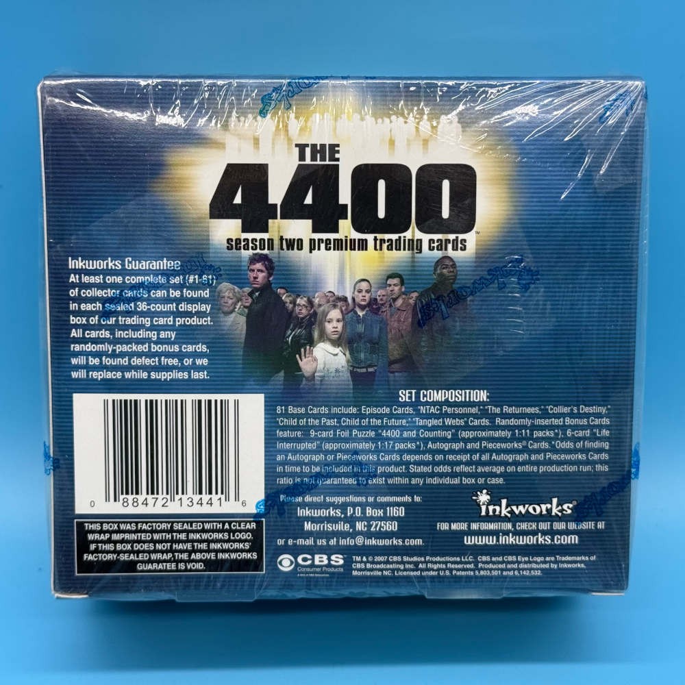 The 4400 Season Two trading card box by Inkworks (2007). 36 packets. Look for autograph cards, Pieceworks cards, and multiple insert sets.
