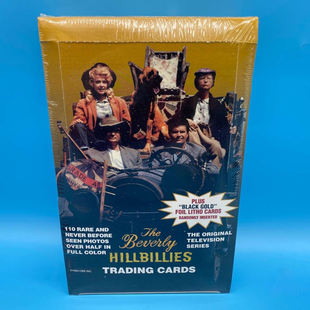 The Beverly Hillbillies trading card box by Eclipse Enterprises (1993). Sealed box with 36 packets. Includes randomly inserted Black Gold foil litho cards.