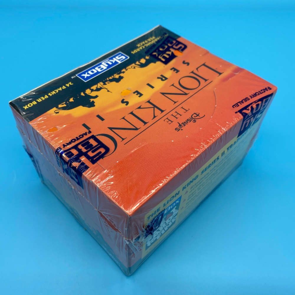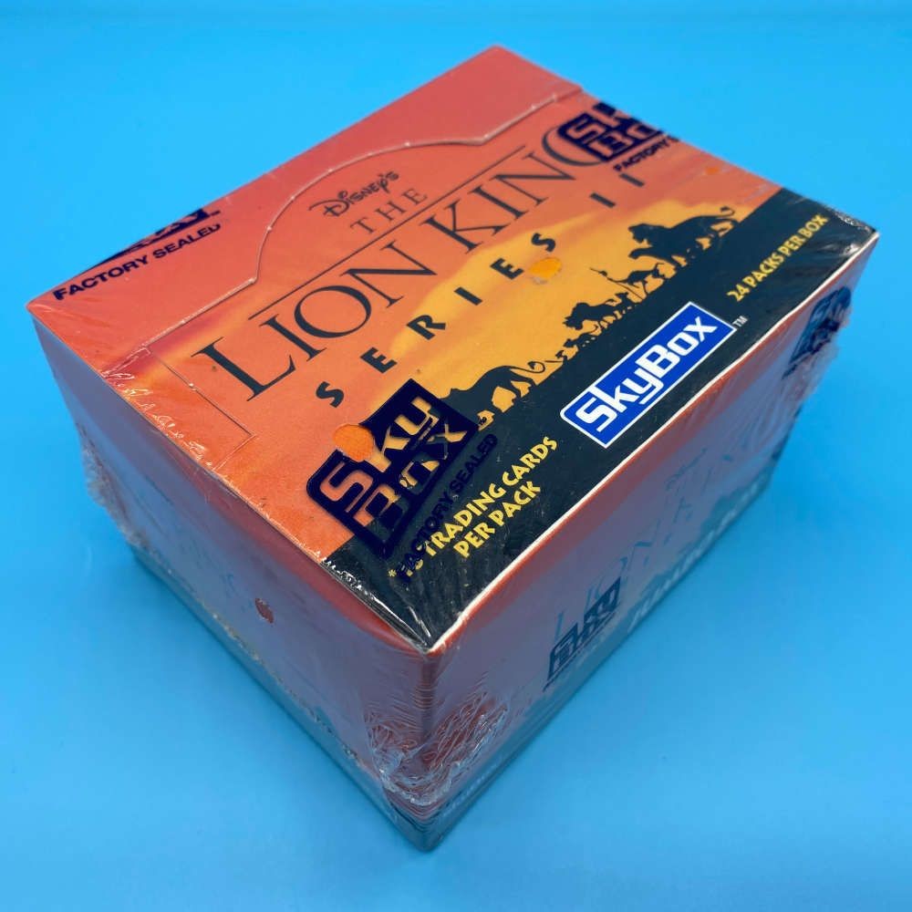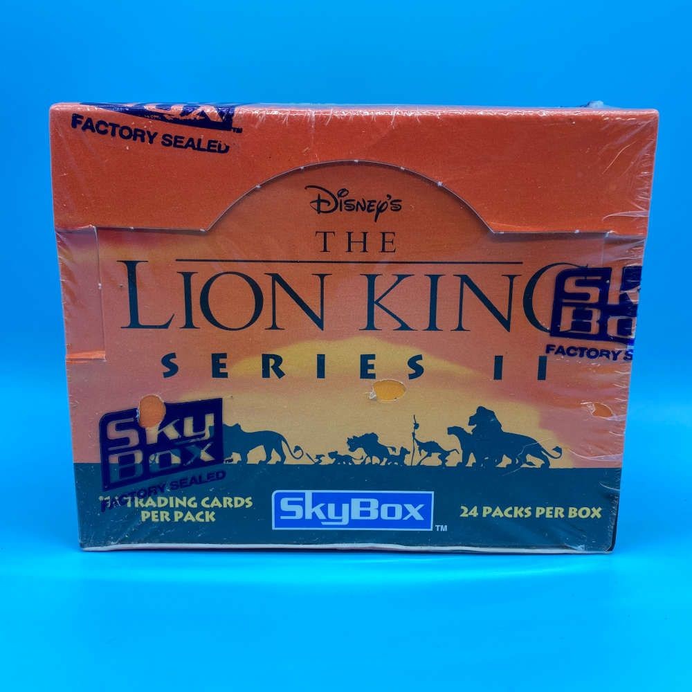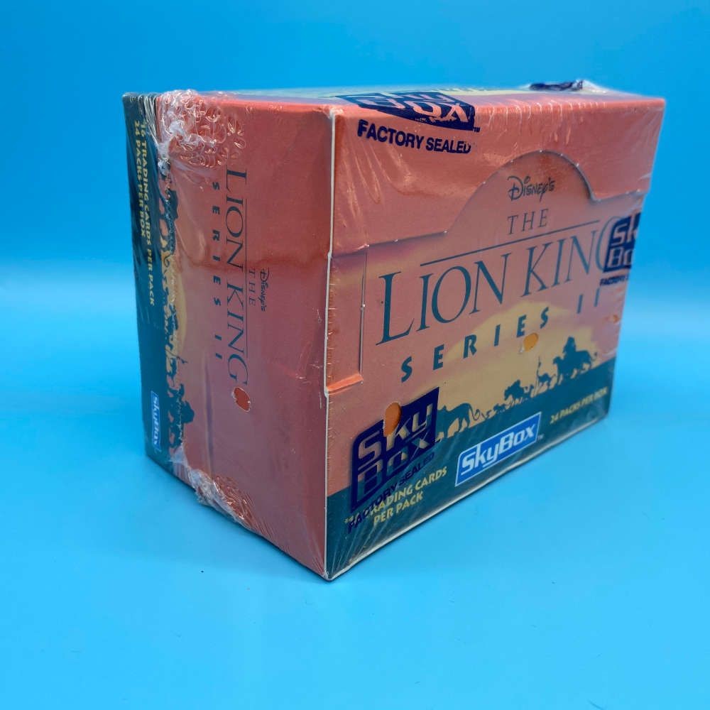 The Lion King Series 2 trading card box by SkyBox (1994). Includes 24 sealed packs with 16 cards each. Look for thermography, foil, and pop-up inserts.