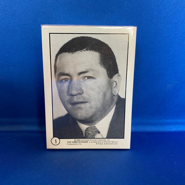 £32.95The Three Stooges Card Set includes 60 black-and-white cards produced by F.T.C.C. in 1989, licensed through Columbia Pictures and Norman Maurer Productions. This collector set features portrait-style photos of Moe Howard, Larry Fine, Curly Howard, and other key members of The Three Stooges cast, including Shemp and Joe. The cards highlight performers from various eras of the comedy trio’s long-running legacy in film and television.