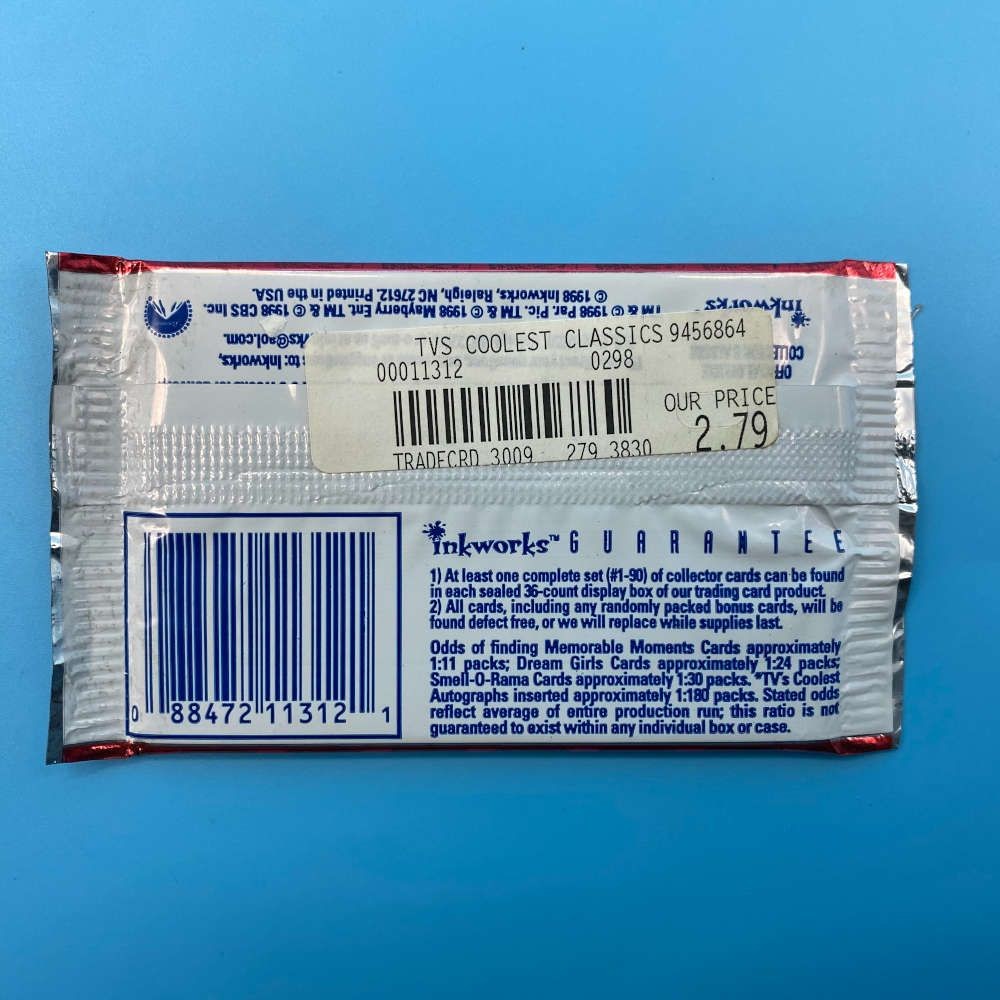 TV’s Coolest Classics Volume One trading card packet released by Inkworks in 1998. Each pack includes 8 cards with possible autograph and insert card variants.