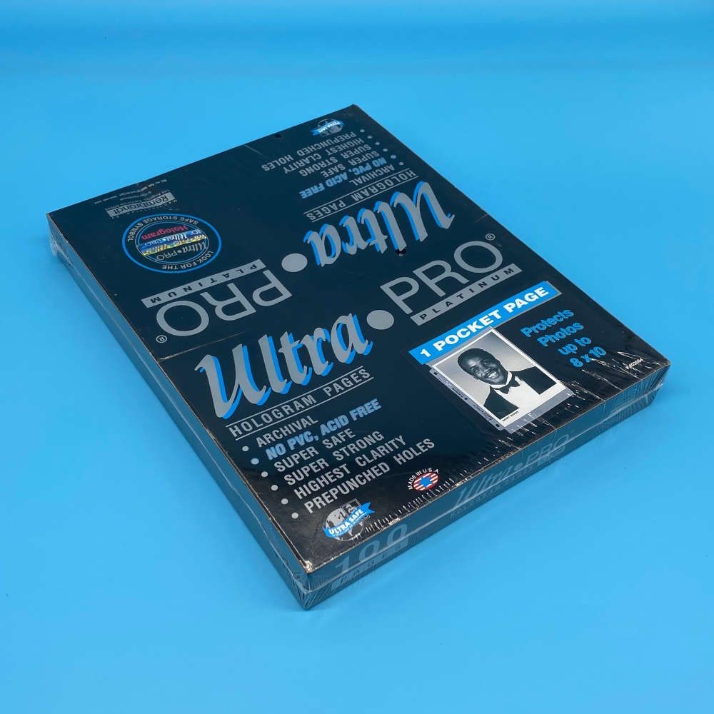 Ultra Pro 1 Pocket Pages 8 x 10 by Rembrandt. Archival box of 100 hologram pages with acid-free, PVC-free design, high clarity, and super strong welds.