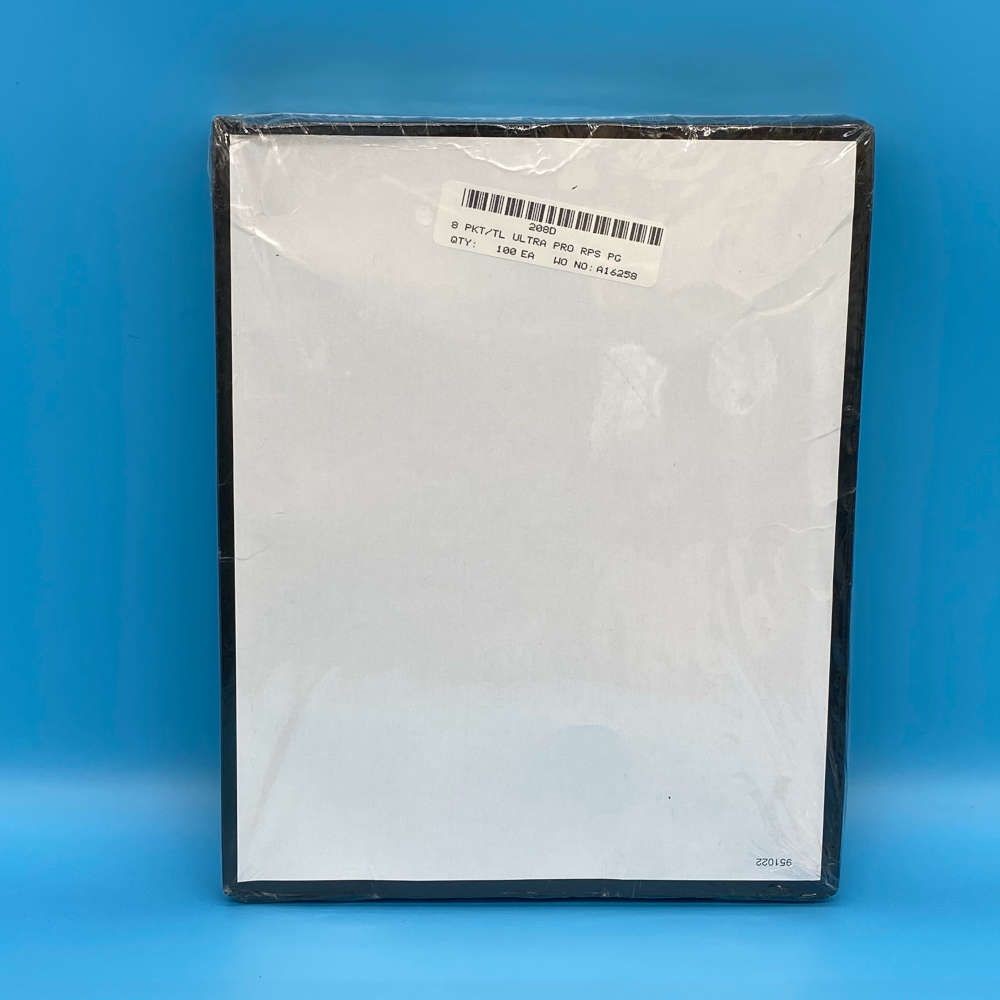 This factory box contains 100 archival-safe Ultra Pro Platinum Series 8-pocket pages, suitable for storing items such as collectible cards, tokens, or similar pieces up to 2½" x 3½". These pages are made from acid-free, PVC-free plastic for long-term preservation. Each sheet is hologram authenticated, features super strong welds, ultra-clear visibility, and pre-punched holes for easy binder insertion.