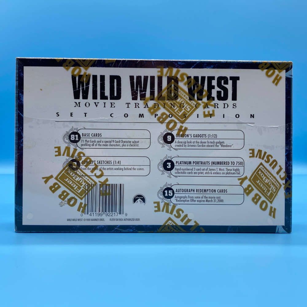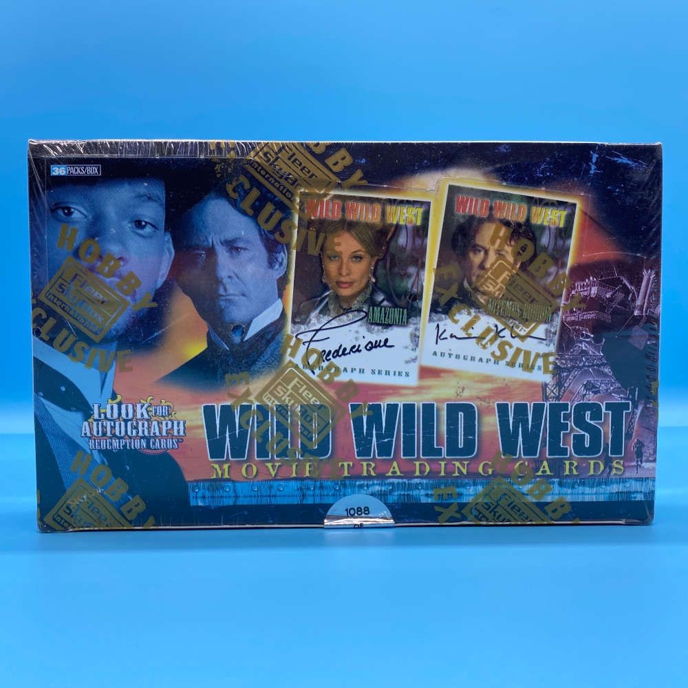 Wild Wild West trading card box by Fleer/SkyBox (1999). Includes 36 packs of 9 cards. Look for concept art, gadgets, portraits, and expired autograph redemptions.